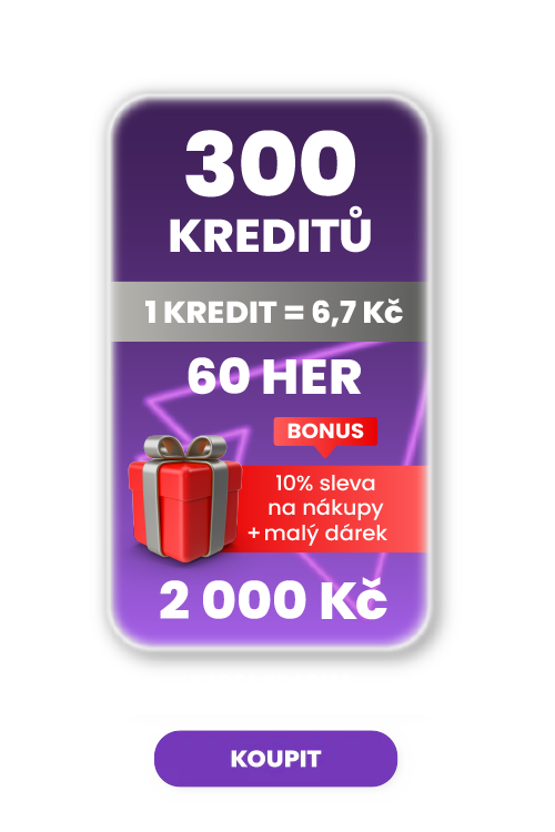 Nabij si kredity na Playground kartu a užij si výhodný a jednoduchý vstup na většinu atrakcí. Vyber si výhodné balíčky kreditů a získej bonusy zdarma! Za každou hru sbíráš body, které proměníš v dárek nebo slevu na nákup hraček. Nabij, hraj, šetři!